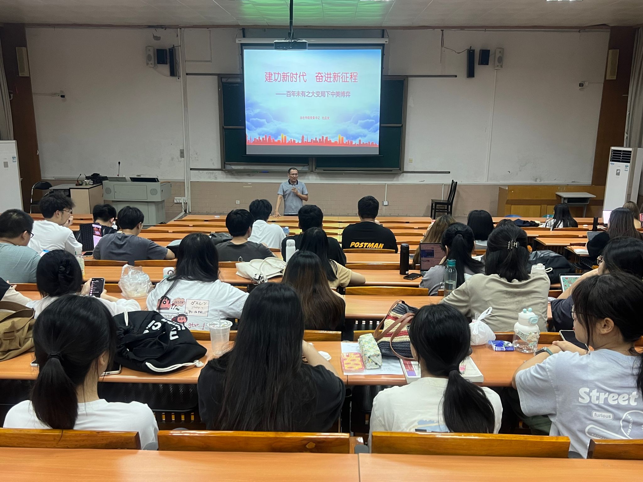 党委书记杜应发以“建功新时代,奋进新征程”为题,为2021级法学卓越班等100多位同学开讲“思政第一课”。
