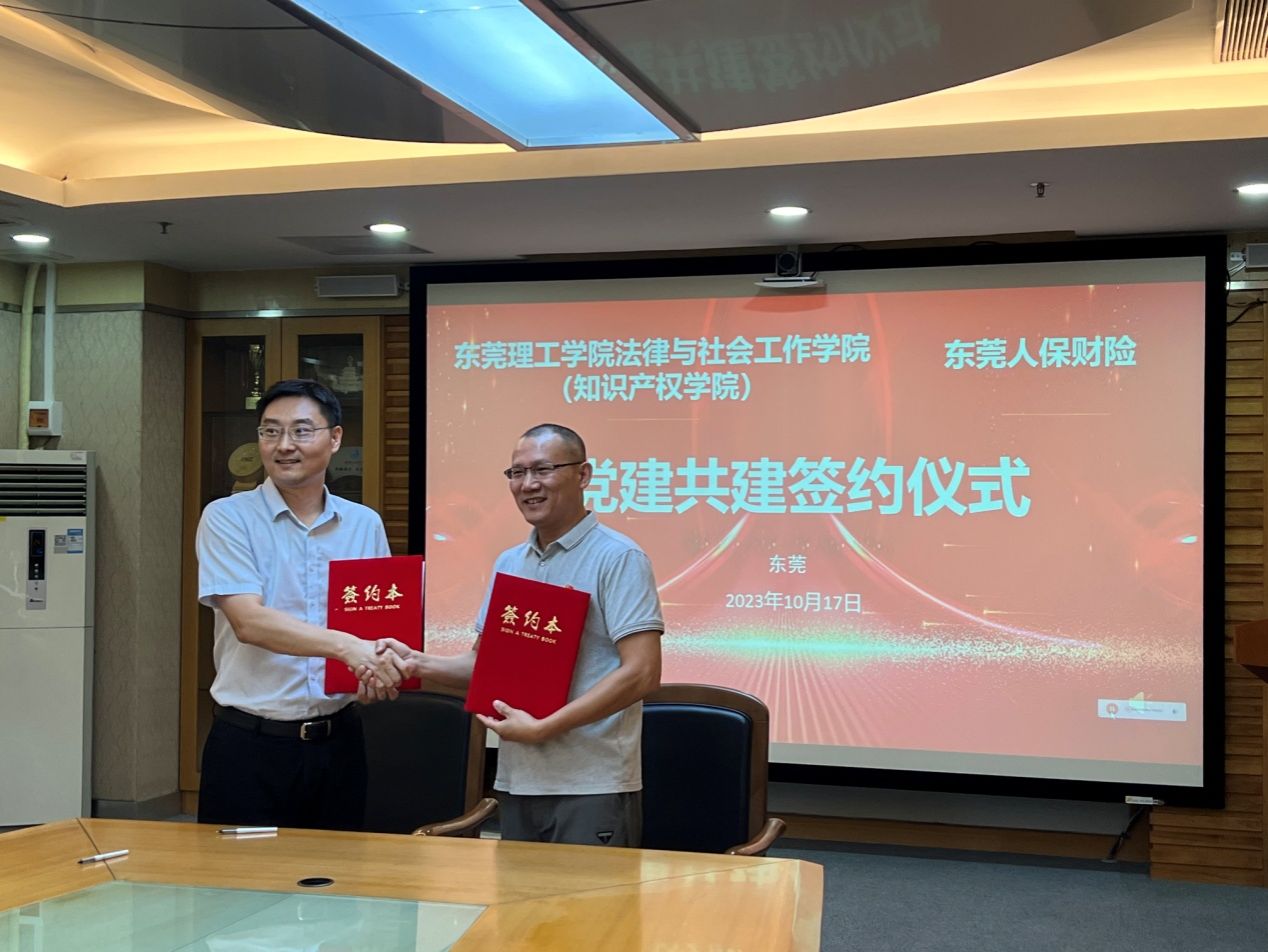 与中国人保财险东莞分公司在东莞人保大厦举行党建结对共建签约仪式,学院党委书记杜应发,党委委员、副院长黄俊辉,东莞人保财险东莞分公司党委委员、纪委书记、副总经理侯杰辉等领导出席了签约仪式。