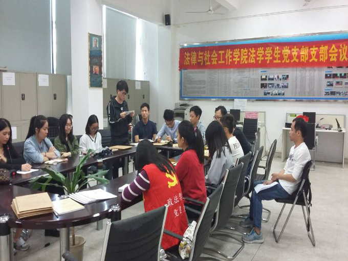 法学学生党支部大会在松山湖校区经管楼211召开。本次会议主要内容是讨论接收预备党员及预备党员转正的问题。法学学生支部书记钟丽华老师、6名党员、12名发展对象以及7名预备党员参加了本次大会。