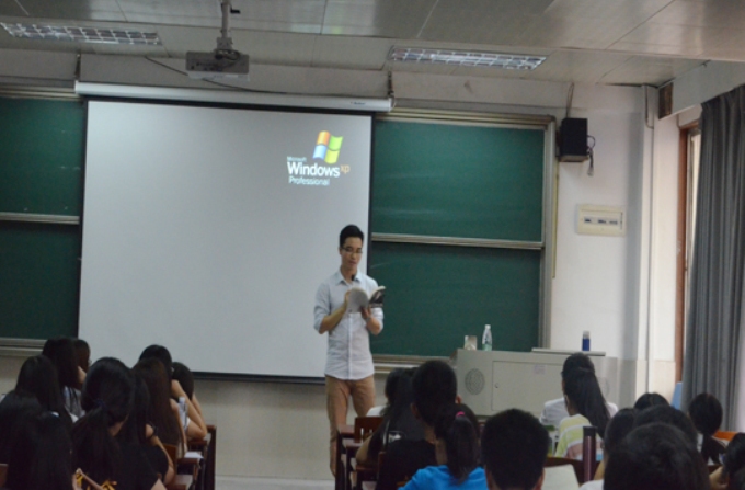 莞城校区的三个缘分点。师兄的满怀感慨地讲述,吸引着同学专注聆听。接着便进入主题,师兄分享了三个好作风,分别是:早起、阅读、态度,并结合生活工作经历对各方面做出详细地讲述。其中,师兄着重分享了阅读,并且当堂给同学们推荐书目和分享书句,课堂的分享读书氛围浓烈。课程的最后,师兄以一段耐人寻味的语段作为结尾,赢得全场的掌声。在本次培训课上,罗志凯师兄亲切诙谐的分享让同学们受益匪浅,受到同学们的热烈回应,课堂气氛十分活跃。