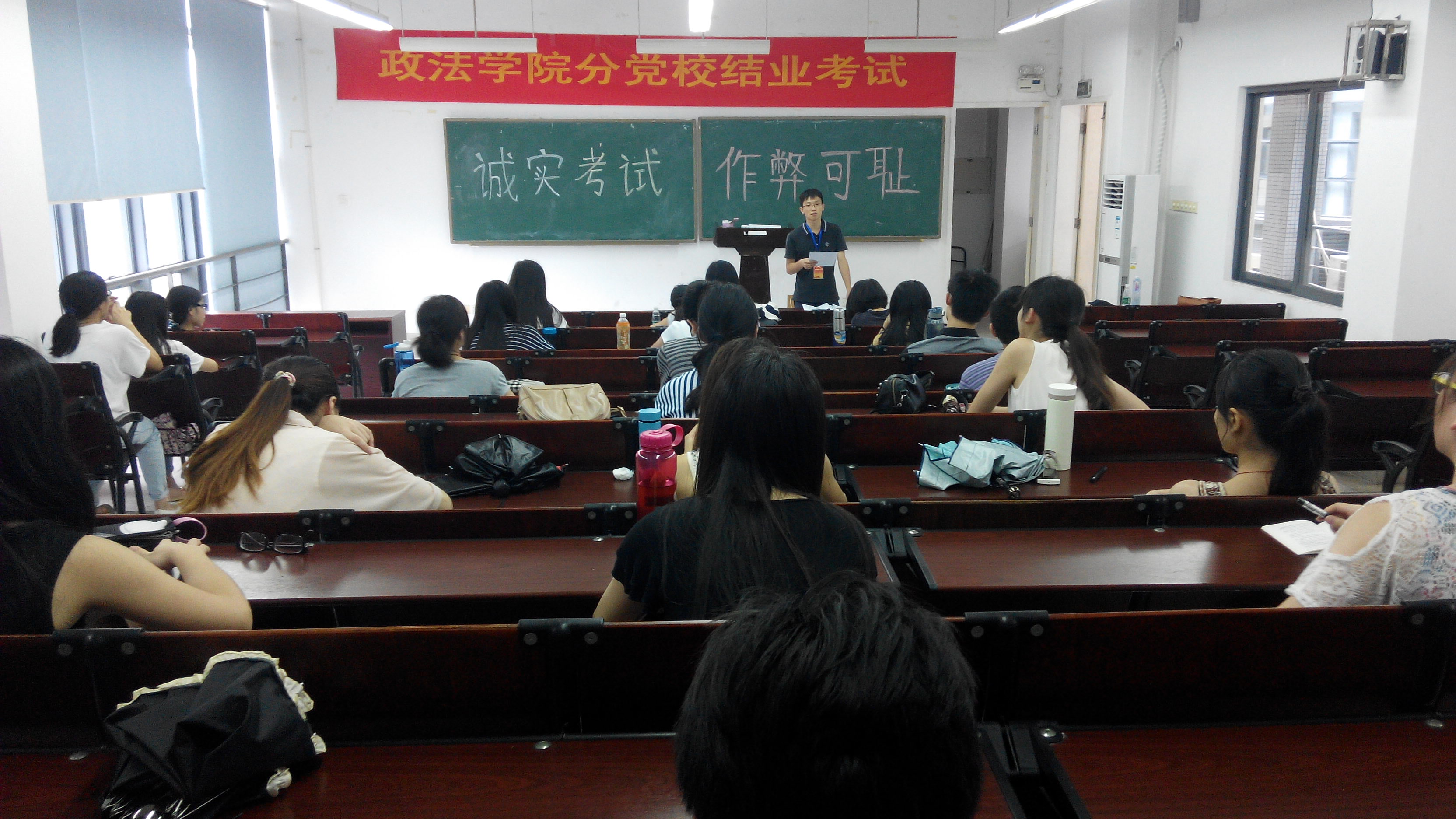 为考核第十八期的分党校培训成果,5月29日下午3:00,政法学院在经管楼216进行了本期入党积极分子的结业考试,全体入党积极分子准时出席。