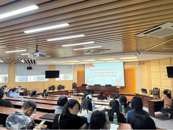 会上,学院党委书记杜应发带领大家学习了《教育部公开曝光第十一批7起违反教师职业行为十项准则的典型案例》和《新时代高校教师职业行为十项准则》。通过以案说法的方式,引导全体教职工筑牢师德“防线”,切实增强遵守教师职业行为十项准则的自觉意识,自觉规范执教行为。