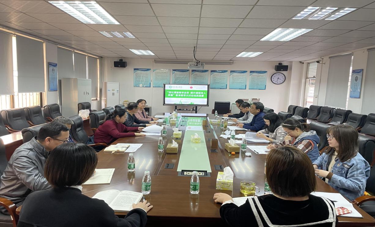 深化课程思政建设实施方案》进行了深入学习。学院党委书记杜应发强调要认真学习文件精神,把思想政治教育贯穿人才培养全过程,发挥好教师队伍“主力军”、课程建设“主战场”、课堂教学“主渠道”的作用,发挥专业优势,形成各类课程与思想政治理论课程同向同行育人格局。