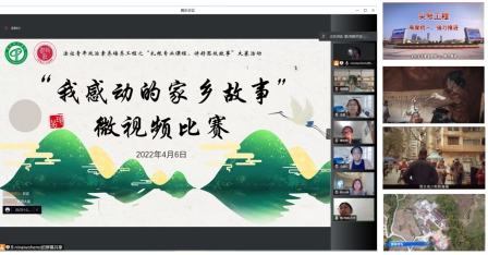 4月6日举行了“我感动的家乡故事”微视频比赛的线上评审活动,最终六个作品脱颖而出,斩获一二三等奖。比赛活动极大地鼓励和带动了同学们将视野回归到自己的家乡当中,使同学们重新审视和感恩自己的家乡,将思政落实回归到生活中去,以赤子之心去感受家乡浓浓的乡土情怀和时代变迁中的家乡变化,用光和影来向大众讲好家乡故事。