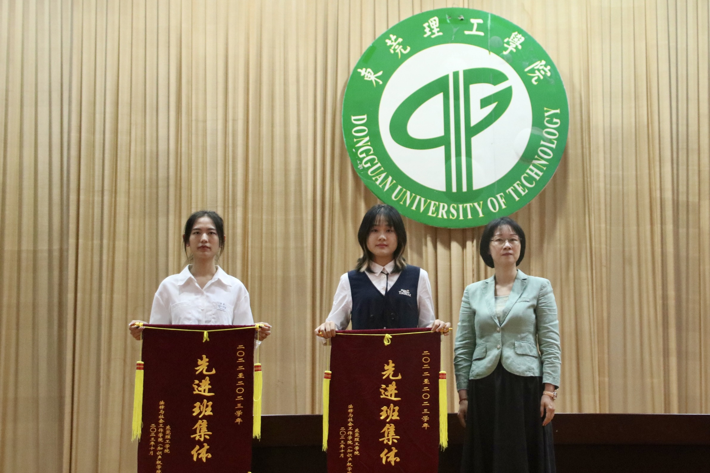 经过激烈的比拼,2021级知识产权1班与2022级法学卓越班脱颖而出,获得2022-2023年先进班集体的荣誉称号,梁意红为获奖班级颁奖授旗。