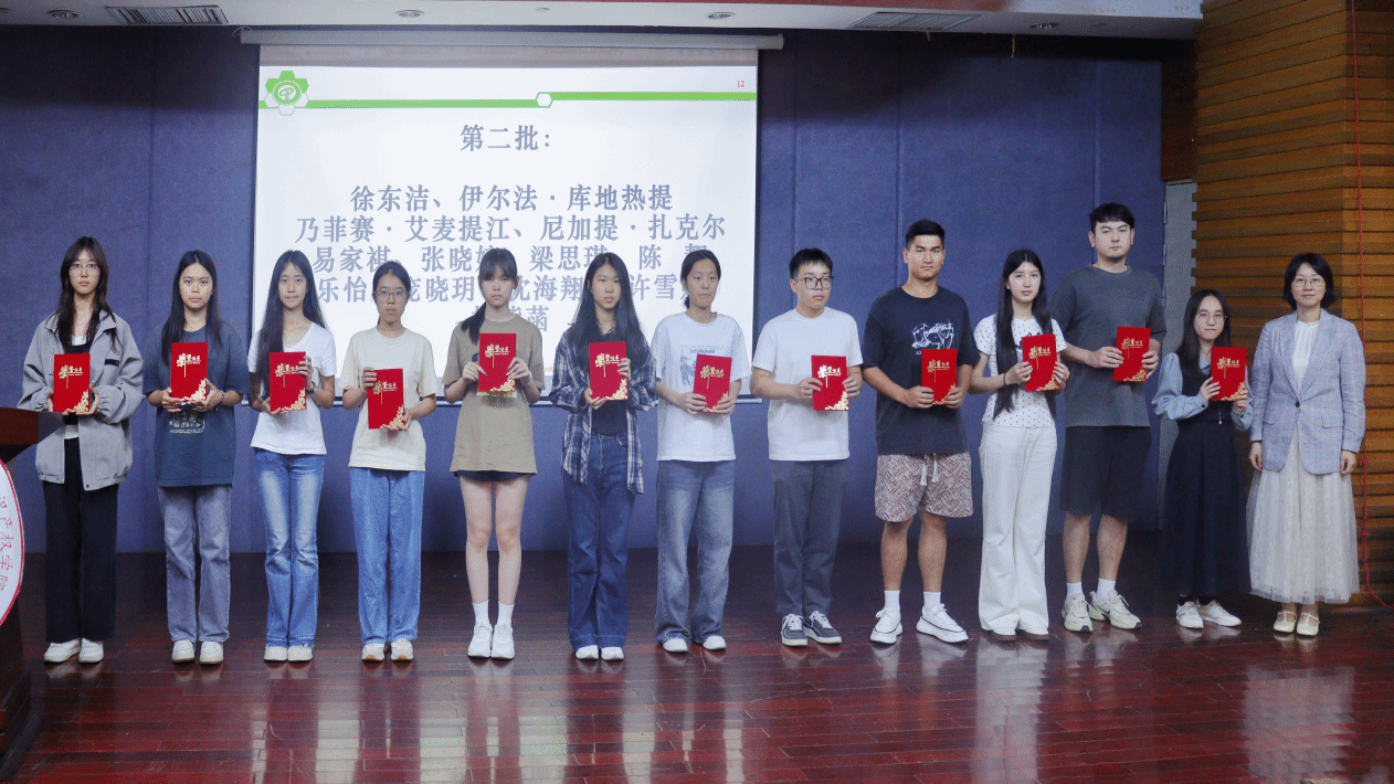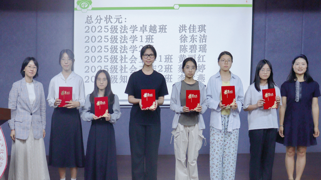梁意红、罗兆婧与2025级第一学期考试总分状元合影。