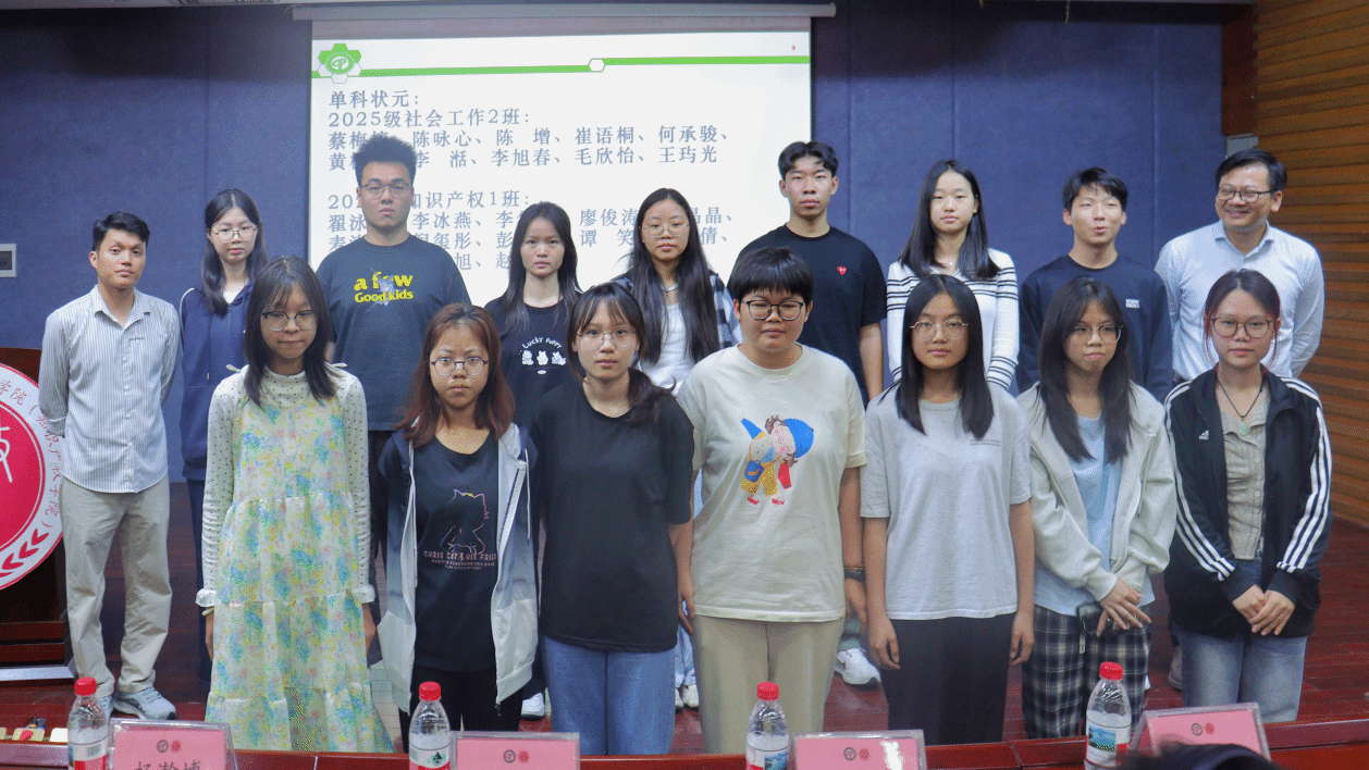 专业辅导员、班主任、助理班主任与2025级第一学期考试单科状元合影。