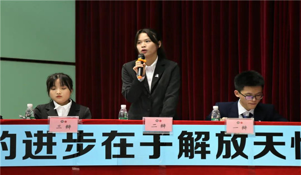 随着比赛进程的推进,双方进入自由辩论环节。在场选手紧抓对方的发言漏洞,轮番用掷地有声的辩词向对方发难。辩手们的旁征博引、妙语连珠也引发了观众的掌声。比赛渐渐进入尾声,双方总结陈词,再次阐述本方立场。在主持人的总结之后,比赛环节告一段落。