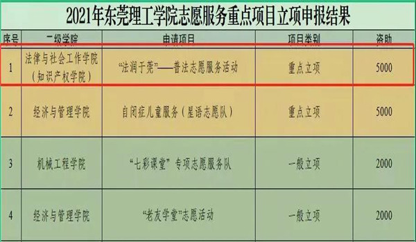 大学生普法志愿项目“法润于莞——普法志愿服务活动”获得立项扶持。