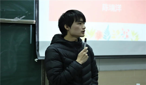 才艺表演环节之后,由陈境洋师兄进行发言。他阐述了各部门才艺表演的积极意义,并为各部门的充足准备和精彩表演点赞。然后,他对本学期以来各位同学在学院工作上的支持和付出表示感谢,并祝愿同学们在期末考试中取得优异的成绩。