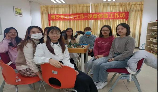 社会工作系教授张燕婷、实验员张子庄特邀行业导师——国家二级心理咨询师李活妙、高级沙盘游戏咨询师尹秀娇、见习督导梁燕珊、中级社工师李玉燕及中级社工师龚丹为2019级社会工作1班与2020级社会工作专插本1、2班开展为期2节的沙盘理论课和为期1节的沙盘体验课,其中,梁燕珊和李玉燕为校外实践基地大众社会工作服务中心的社工。