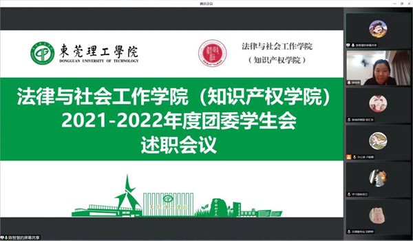 于2022年7月10日晚7:30在腾讯会议软件上举行了团委、学生会述职会议。本次会议由法社团委、学生会执行主席陈智慧主持,学工办主任钟丽华、辅导员邹欢、团委、学生会委员团及团委、学生会各部门的主要负责人出席了此次会议。