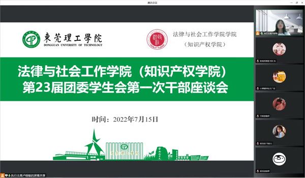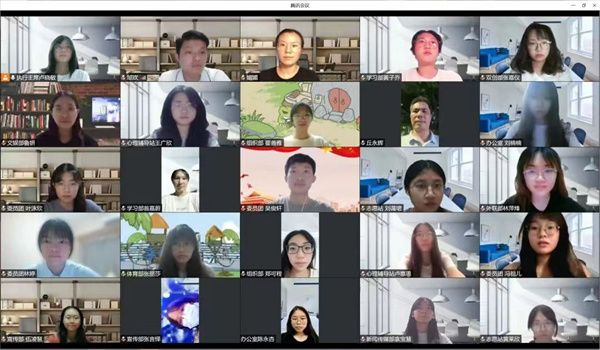 团委学生会于7月15日晚7:30在腾讯会议软件上召开了第二十三届团委、学生会第一次干部座谈会。本次会议由执行主席卢晓敏主持,党委副书记丘永辉、学工办主任钟丽华、辅导员邹欢和谢媚媚,以及团委学生会全体学生干部出席了本次会议。