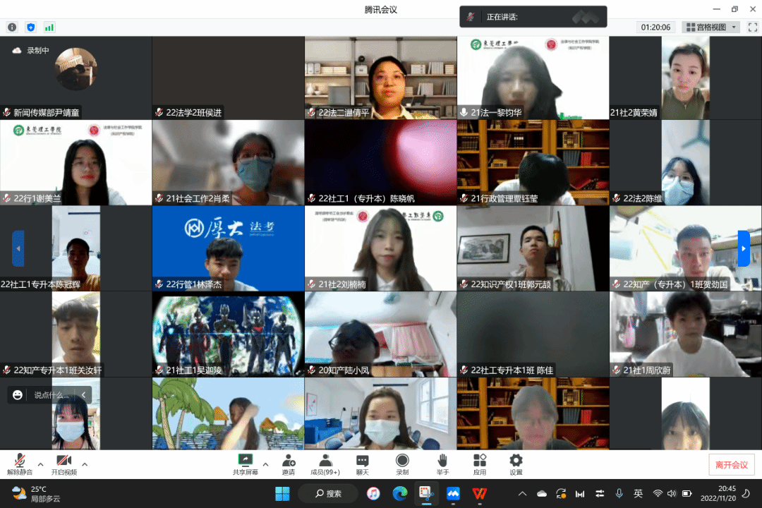 于2022年11月20日在腾讯会议举办第二期刈思沙龙:“志愿于心,服务于行”志愿活动分享。本次活动邀请了2021级社会工作2班的刘楠楠同学和2022级行政管理1班(专升本)的谢美兰同学作为主讲人,作为广东省三星级志愿者,她们分享了自己对于志愿服务的独特见解。