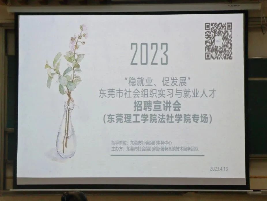 此次招聘会由东莞市社会组织事务中心指导开展,宣讲会上,各社工机构依次进行宣讲。东莞市社会组织创新服务基地技术服务团队负责人表示,该活动是一个机遇,为同学们深入了解行业和机构搭建了平台,也感谢各企业为毕业生提供许多优质的就业岗位。