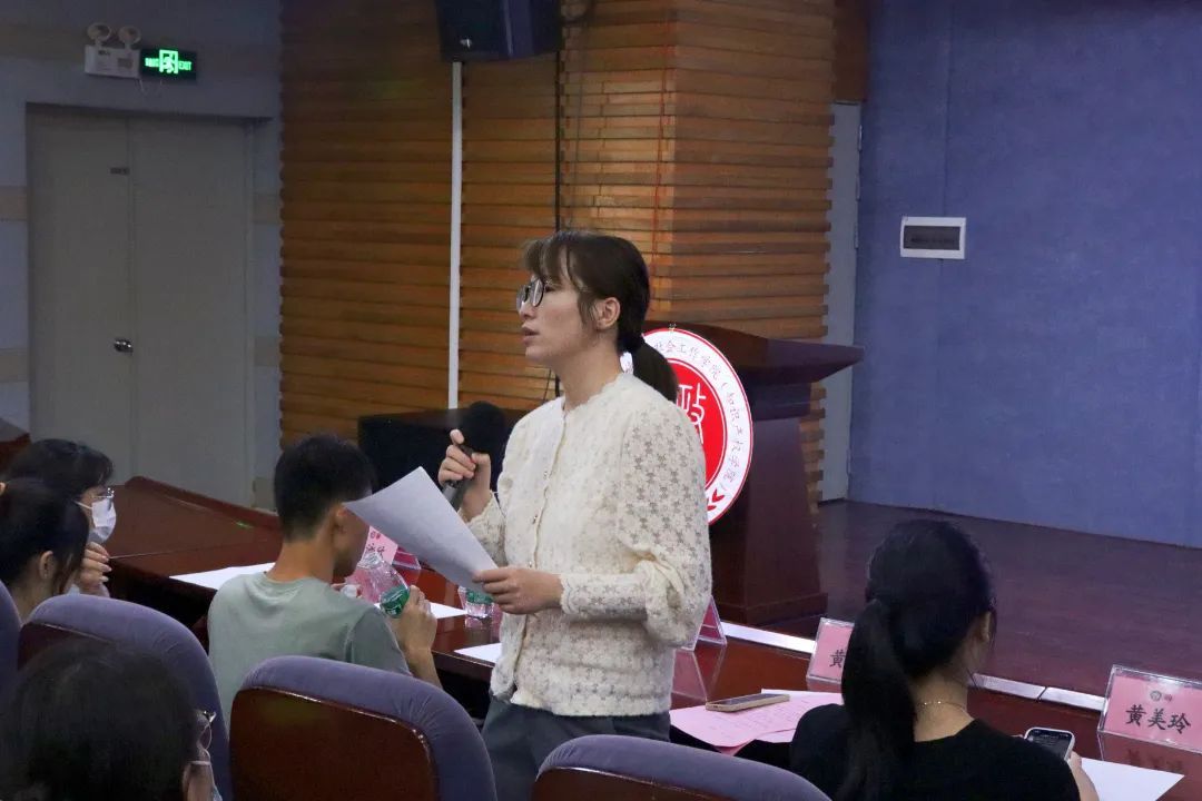 所有队伍展示完毕后,黄海娜老师进行简单的总结点评。她对选手们的现场表现和认真准备给予了肯定;同时,她也指出了选手们的欠缺之处,鼓励他们要不断学习和强化诵读技能;最后她对选手们寄予厚望,希望同学们汲取经验,多说多练,不断成长,持续绽放。