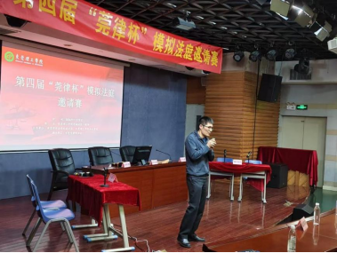 联合东莞市司法局东城分局主办,东莞市律师协会协办,邀请东莞地区高校相关专业学生与我校学生同台竞技。赛事从9月持续到11月,初赛由各校校内完成,近300人参加了决赛观摩。东莞市中级人民法院四级高级法官林静担任比赛主任评委,市律协派出知识产权法律专业委员会副秘书长、德恒所袁慕贞律师,启盟所袁艳君担任本次比赛评委。决赛于11月29日在我校莞城校区小剧场圆满落幕。