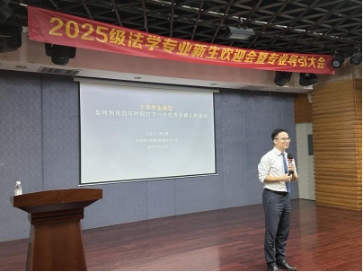 新生班主任杨璇则聚焦AI时代的法学学习,指出背诵法条绝非终点,需培养AI无法替代的价值衡量能力与实践思维。她建议新生们带着问题去阅读,在生活中观察法律现象,积极参与线下集体活动与体育锻炼,在物理世界中筑牢人际连接、强健身心。