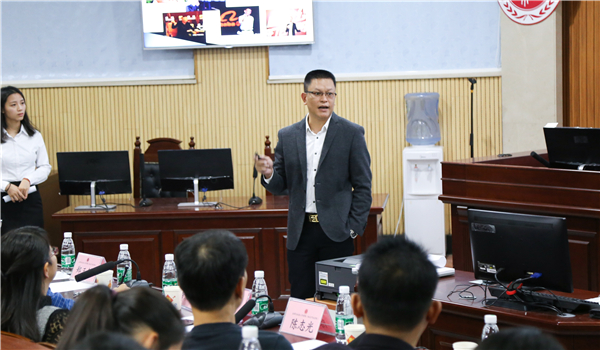 校友经验分享会在莞城校区6#2模拟法庭举行。本次邀请了校友卢珮瑜师姐和陈志光师兄作为分享会的嘉宾,同时,出席本次分享会的领导和老师有院长郑玉敏,党总支书记潘荣新,副院长沈亚萍,副书记丘永辉,学工办主任钟丽华,辅导员邱可荣。