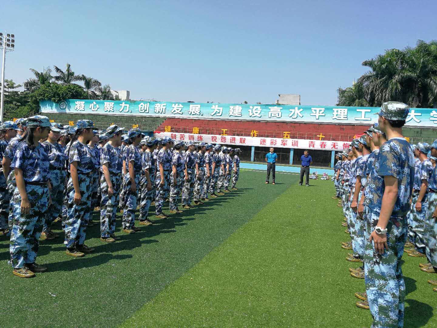 在连队中强院长用自己当兵的事例,激励2018级参训新生,希望他们能够顶住烈日,坚持完成军训各项科目,争取在最后的汇报演出中获得优异的成绩。潘书记也给用自己所见所闻,鼓励同学们认真训练,好好利用军训这个机会锻炼自己,为大学四年的学习与生活打下坚实的基础。最后丘书记为同学们再次打气加油,让同学们安心训练,学院会为同学们解决各种后勤问题,争取给学院取得军训的佳绩。