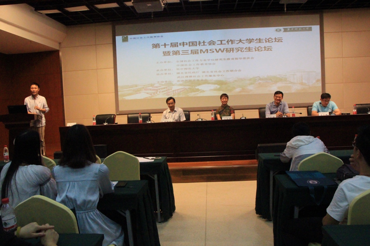 2018年8月19日至21日间,第十届中国社会工作大学生论坛暨第三届MSW研究生论坛在湖北武汉华中师范大学隆重举行。本次论坛由全国社会工作专业学位研究生教育指导委员会、中国社会工作教育委员会联合主办,华中师范大学承办。协办单位为湖北省民政厅、湖北省社会工作联合会、武汉博雅社会工作服务中心。参加本次论坛的223名选手分别来自全国110所高校的社会工作专业硕士研究生和本科生。