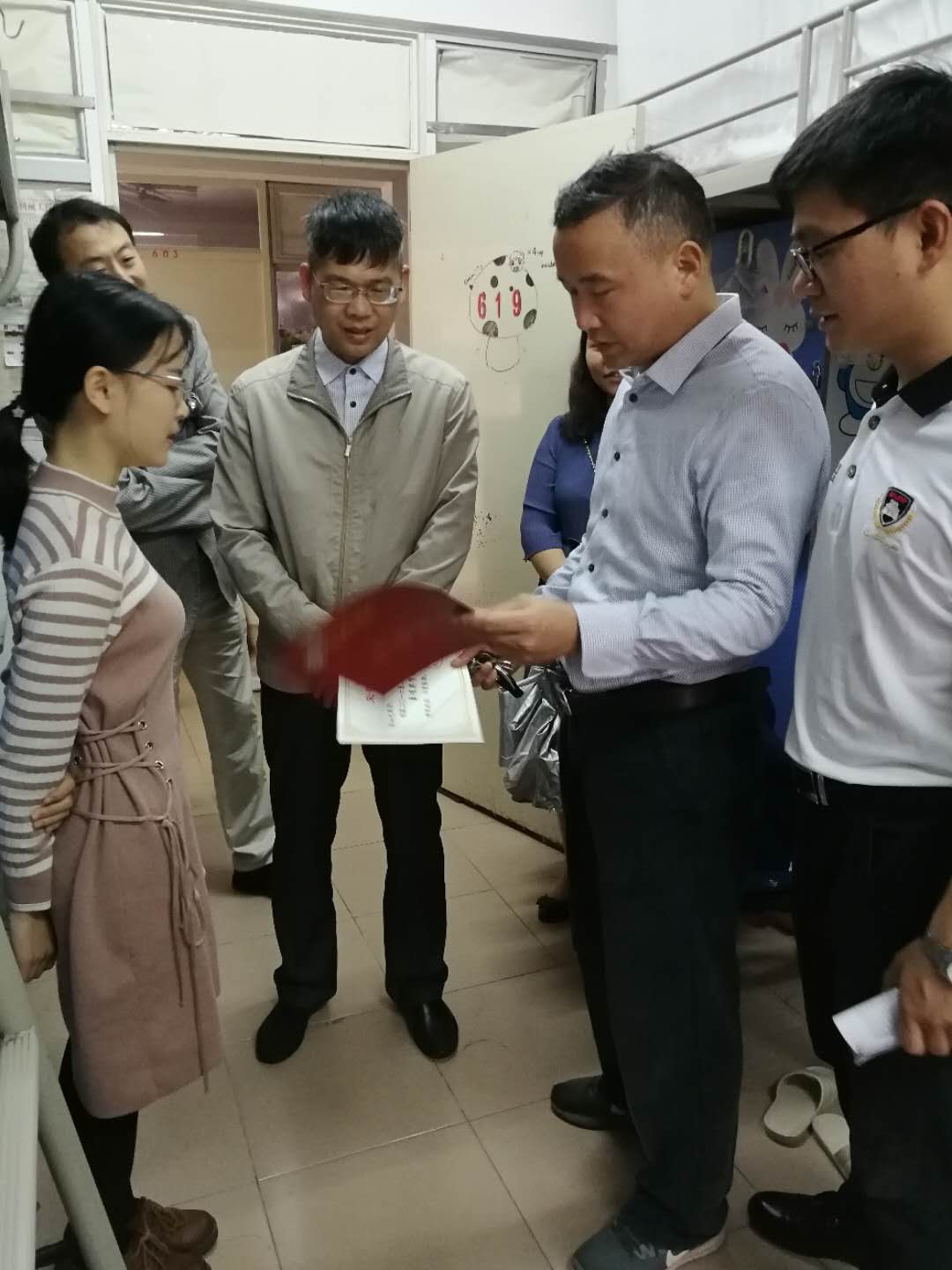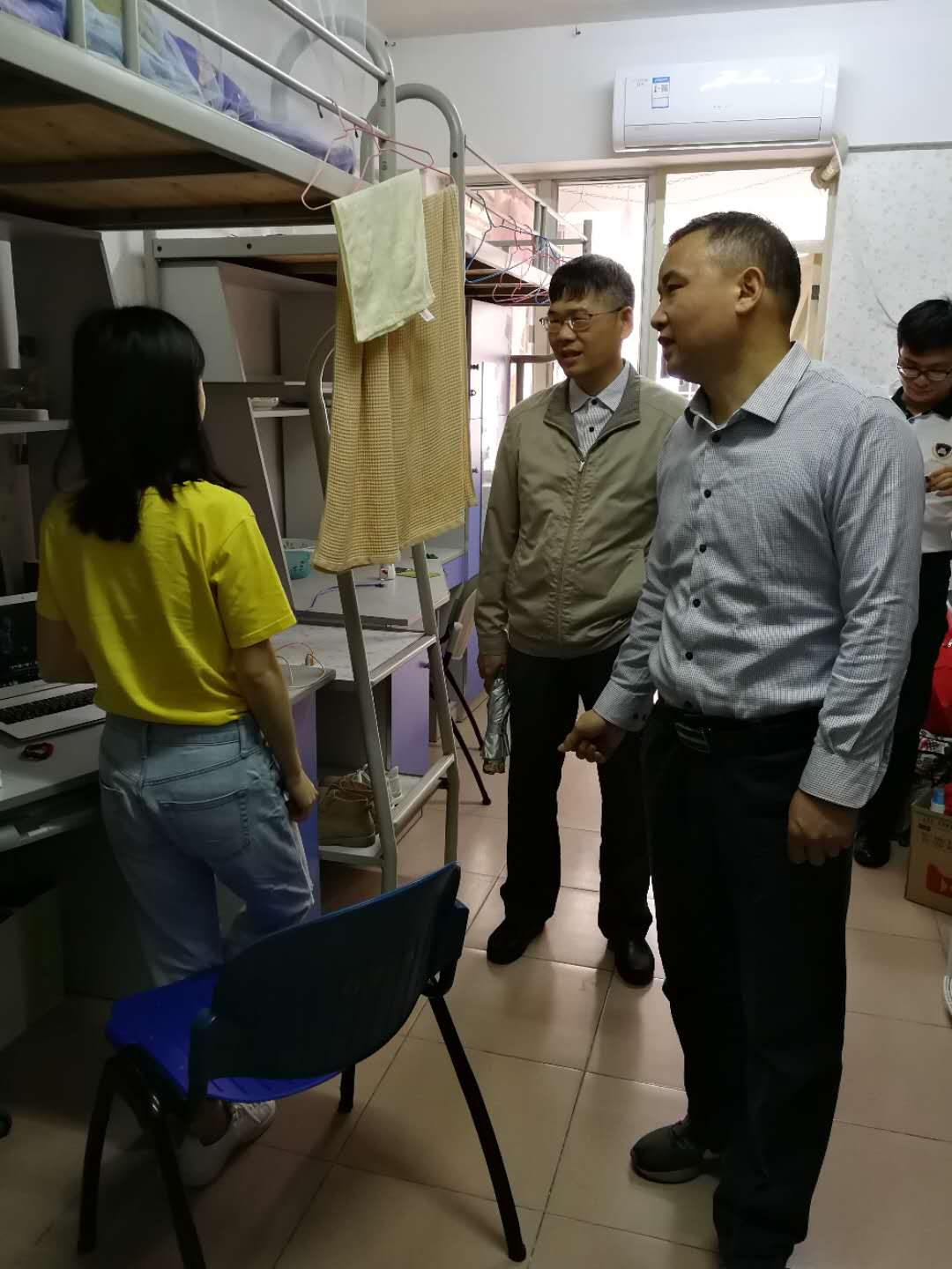 强昌文院长和潘荣新书记在辅导员老师们的陪同下,深入学院学生宿舍,实地探访刚刚返校的同学们,为同学们献上新学期的第一次开学寄语。