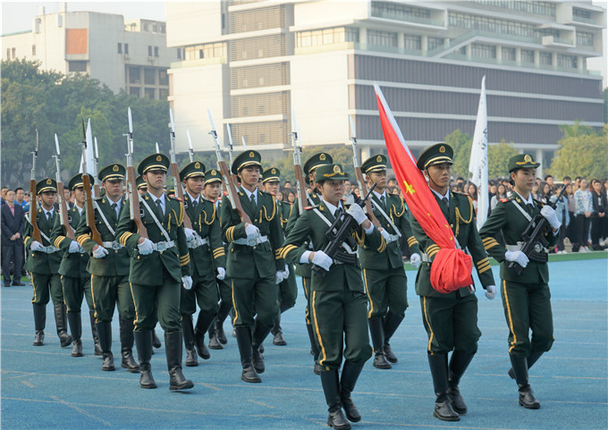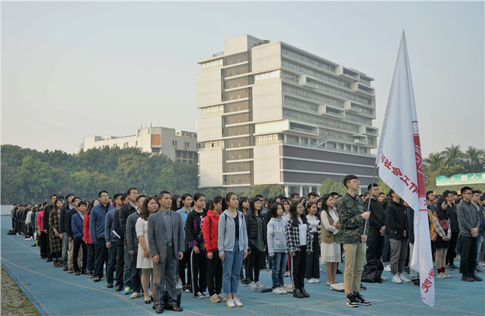 莞城校区迎来了新学期第一次升旗仪式。参加此次升旗仪式的人员有学工部、武装部、莞城校区各二级学院党总支副书记、辅导员、学生党员以及2017级全体学生。