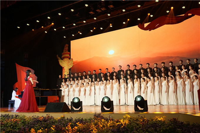 合唱团的成员们身着整齐统一的服装,迅速有序地进场。音乐响起时,他们一展歌喉,放声高歌,出色的音准音色获得了现场观众热烈的掌声。一首铿锵有力的《我和我的祖国》让人深受震撼,将浓浓的爱国情怀表现的漓淋尽致。一首轻快活泼的《清晨我们踏上小道》为我们描绘了一幅朝气蓬勃、欣欣向荣的晨景。最终,肉漫画