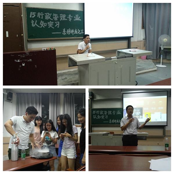 为了使行政管理专业的学生更加深入地了解自己的专业,进一步加深对行政管理理论知识的理解并熟悉行政管理理论和技能在实践中的应用,公共管理系根据培养计划,给15级行政管理专业开展了行政管理专业认知实习系列讲座,分别邀请三位嘉宾为同学们开讲。