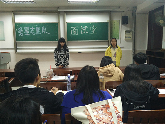 莞城校区1408等候室进行爱星志愿队招新面试前的准备工作。准备工作完成后,于下午2:30在肉漫画