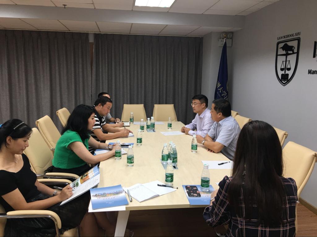 院长强昌文带领法律系主任郑玉敏教授等一行人来到深圳大学法学院调研交流立法基地工作。深圳大学法学院黄亚英院长主持本次会议、丁南副院长等深圳大学法学院骨干教师参与了座谈。