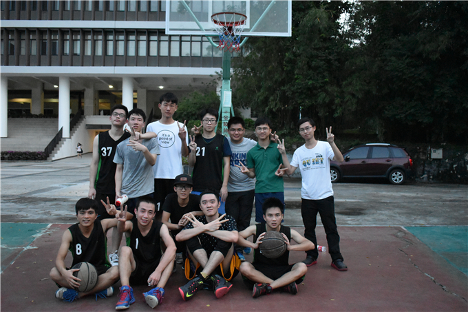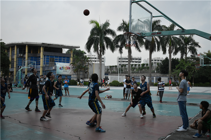 篮球赛决赛第一轮小组赛在图书馆后的篮球场举行。