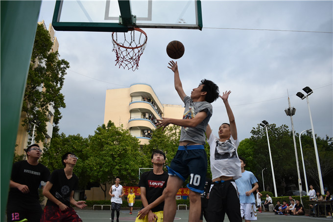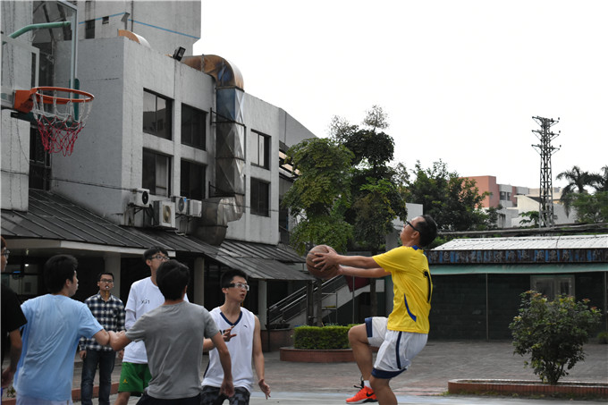 球赛开始之前,同学们就已经跃跃欲试,积极做好热身准备。16点50分球赛准时开始,学生先行上篮得分。随后双方都不敢轻敌,比赛很快就到了白热化的阶段。球场上,观众的加油欢呼的声音,篮球落地的声音,师生奔跑踏地的声音此起彼伏。最后师生双方的比分为81:68,老师们赢得了这一场比赛。
