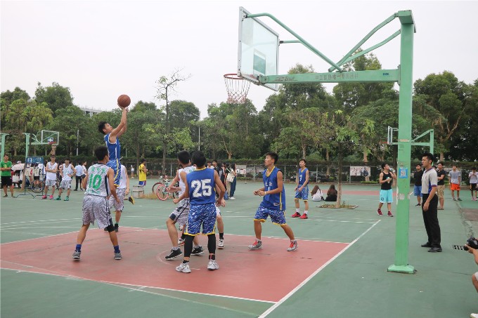 5月19日下午4点30分,政法学院在松山湖篮球场与经贸系开展了一场激烈的篮球赛。潘书记与强院长亲临现场为肉漫画