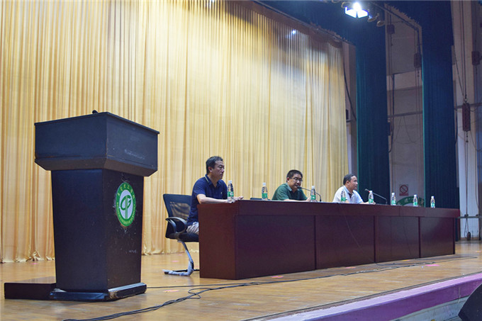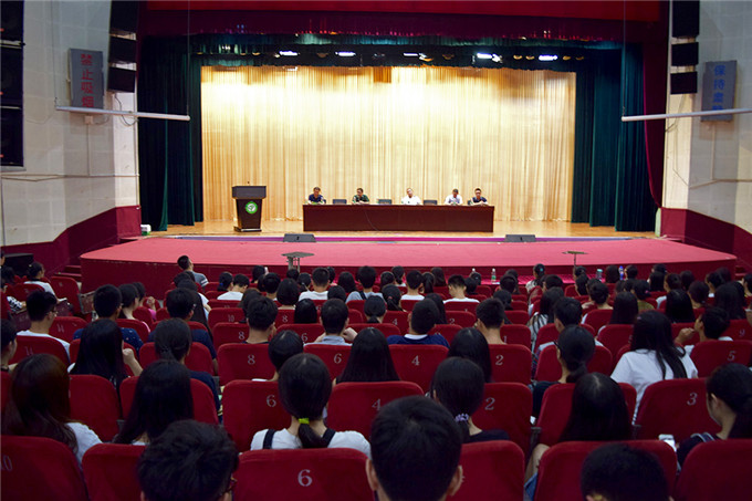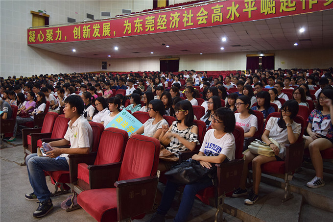 于莞城校区大礼堂成功召开政法学院2015级新生见面会。政法学院院长强昌文教授、副院长夏能礼、党总支书记潘荣新、辅导员刘海波、10级师兄李溯出席了此次见面会。