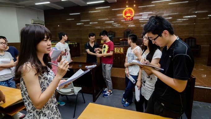 5月15日晚,第十届科技学术节之模拟法庭第一次排练在6C-103举行,此次的排练演员包括审判长、陪审员、人民陪审员、书记员、公诉人、原告、被告、法警、证人。此次的演员不仅有政法学院的学生,还有来自其他院系的学生参与到此次的演出中。各位演员通过对剧本的记忆和理解,认真地练好自己所扮演的角色。学生演员中,有些是之前有参与到视频拍摄的有过经验的“老演员“,有些则是第一次接触演员。虽然是第一次接触演戏,但是学生们毫不怯场,排练表现自如。