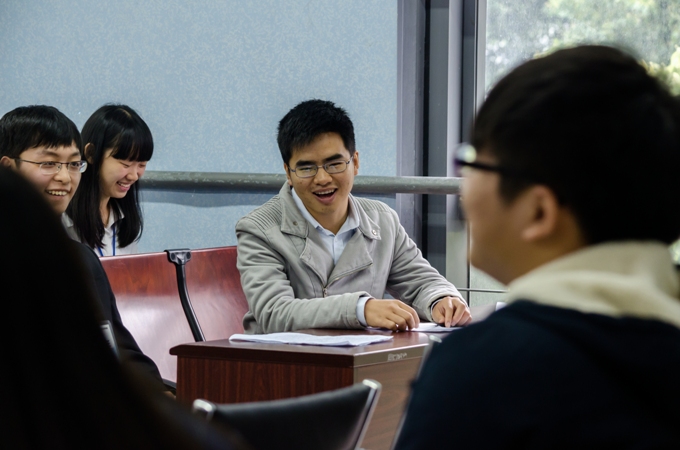 在会议开始前,虽松湖冷丝丝地下着雨,但是为了展现政法学院学生会朝气蓬勃和团结进取的精神,全体委员们都穿起正装,精神抖擞地进入会议室,等待着评委的考察。