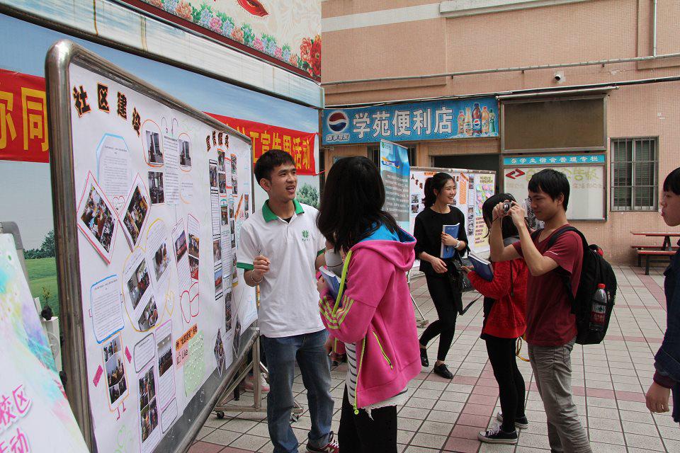 13级社工学生在社工专业教授成伟还有老师们的带领下,在校园里同样开展了社工宣传活动。