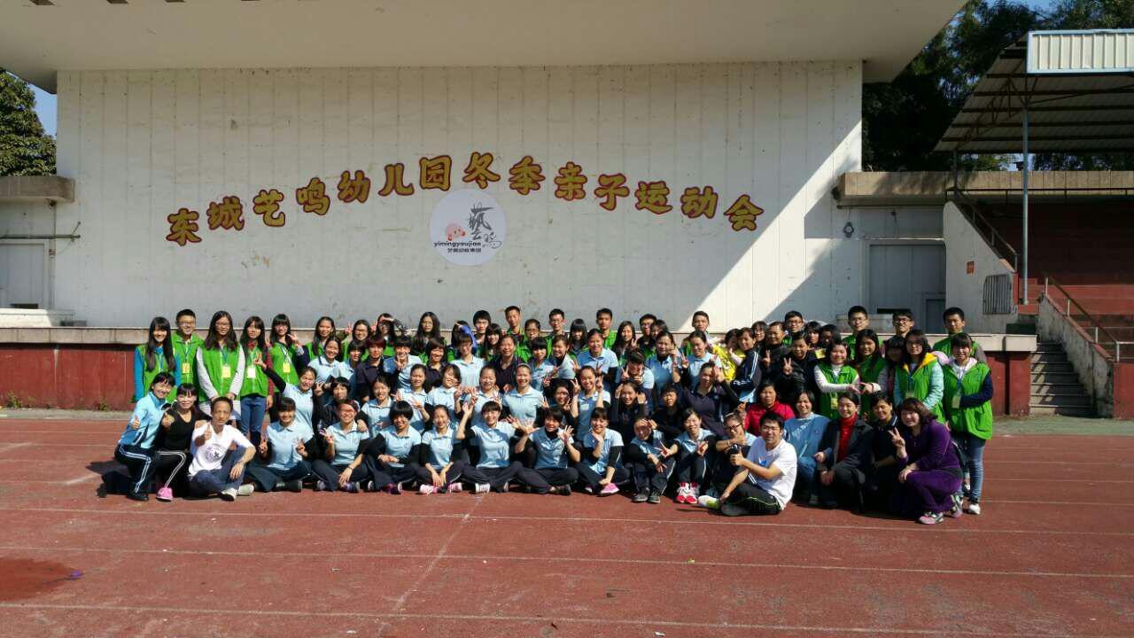 2014年12月21日星期日上午,政法学院以及工管,化环,计算机学院,经贸系的志愿者迎着晨露来到了人民公园足球场,协助艺鸣幼儿园开展一场暖暖的冬季亲子运动会。