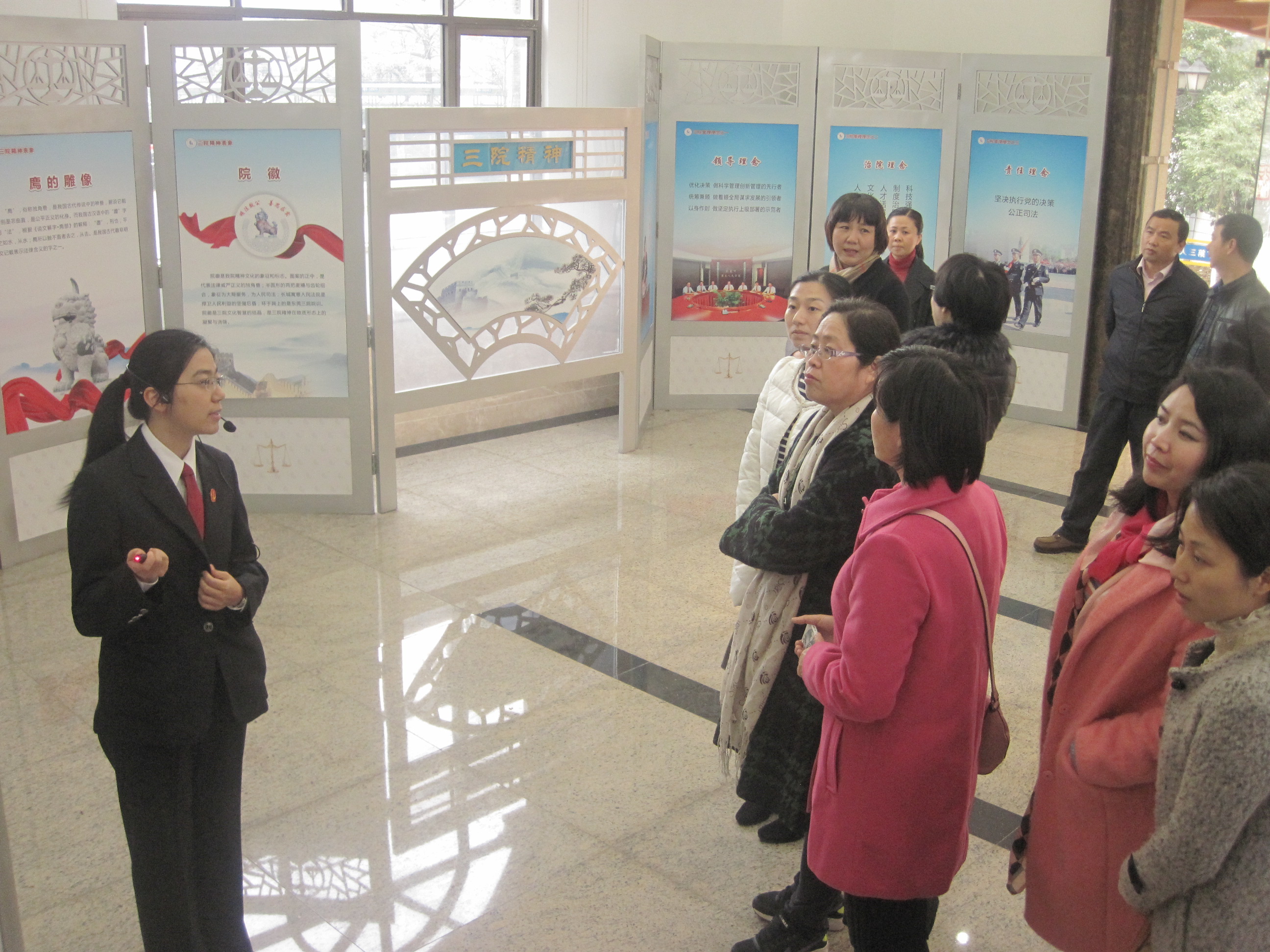 日下午,肉漫画 政法学院全体女教职工在院长强昌文带领下,赴东莞市第三人民法院参观、学习和交流。第三法院副院长邵沛良和主要业务骨干予以热情接待,首先组织参观三院特色文化长廊和威严庄重的审判工作场所,老师们对三院独特的“法廌文化”氛围印象深刻,对法官们认真敬业的工作精神十分钦佩。