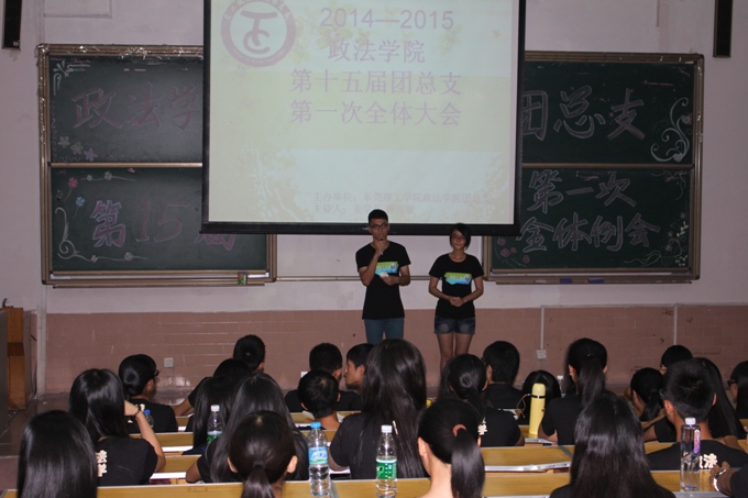 10 月18日下午2点30分,政法学院团总支在莞城校区5号阶梯课室召开了政法学院第十五届团总支第一次全体会议,出席的嘉宾有政法学院团总支书记邓磊老师以及有团总支常务副书记袁智勋等团总支委员。