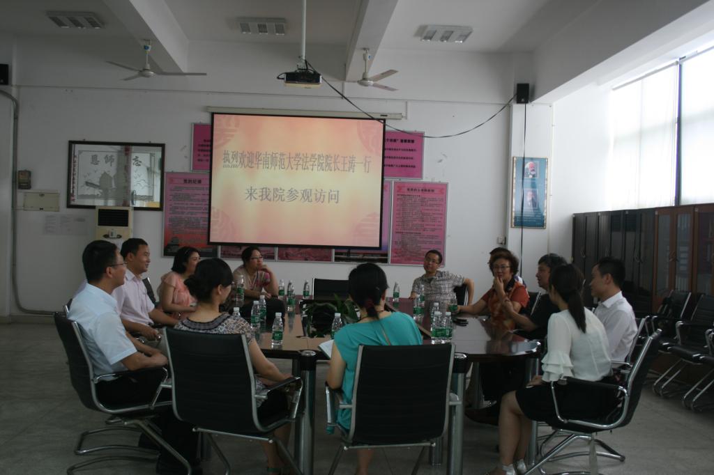 5月30日,华南师范大学法学院院长王涛、名誉院长崔卓兰教授等一行来到政法学院进行访问。座谈会上,肉漫画 党政班子成员及法学教研室部分骨干教师与来宾们作了广泛深入的交流,双方在教学管理制度、法硕建设以及司法考试辅导等方面互通有无,促进了双方的专业联系,为日后双方的资源共享、办学合作奠定了基础