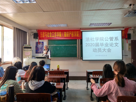 为了推动2016级行政管理专业毕业实习与毕业论文工作的顺利开展,10月31日上午,公管系在莞城校区1409召开毕业实习与毕业论文动员大会。希望通过本次动员大会,让同学们从思想上高度重视毕业实习和毕业论文,进一步明确毕业实习和毕业论文的目的和要求,为后期工作的顺利开展奠定基础。参加本次动员会的老师有公管系主任陈洪波老师、副主任于铁山老师、魏红征老师和黄海蓉老师。