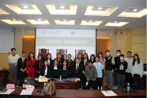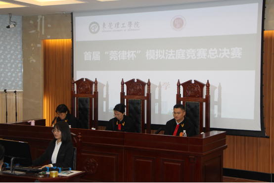 经过前期书状评选与初赛八进四的激烈角逐,四支队伍脱颖而出。11月11日举行了《模拟法庭》实训课程结课汇报暨第一届“莞律杯”模拟法庭决赛。决赛邀请了东莞市中级人民法院副庭长陈娟娟高级法官和广东法制盛邦(东莞)律师事务所高级合伙人李秀源律师担任校外评审,校内评审由黄广进老师担任,吉海荣老师主持了庭审比赛。