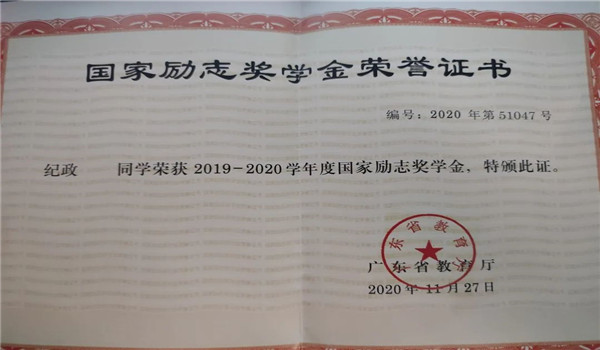 国家奖学金。
