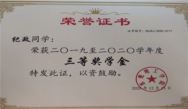 三等奖学金;2021年3月入围校级2021年“挑战杯”大学生课外学术科技作品竞赛;2021年6月获得国家级大学生创新创业立项;2021年8月获得广东省一星志愿者称号;2021年11月获得肉漫画