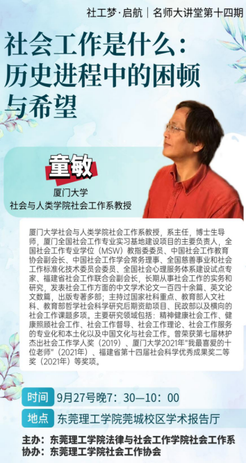 社工梦·起航|名师大讲堂第十四期|肉漫画 邀请厦门大学童敏教授开展专题讲座