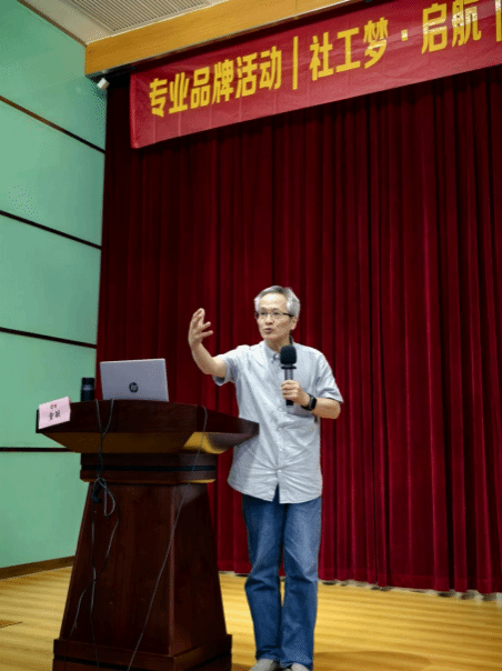 讲座开始,童敏教授以专业的视角,引领我们深入探索社会工作的起源。他首先详尽阐述了该领域的奠基者——玛丽·里士满(Mary Richmond)的卓越贡献。随后,他精准地传达了里士满在1901年全美工作会议上所提出的核心理念:“在环境中帮助他人”,这一观点深刻揭示了社会工作实践的本质。此外,童敏教授还进一步剖析了社会工作的核心理论框架——“人在情境中”,为我们构建了一个全面而深入的理解框架。