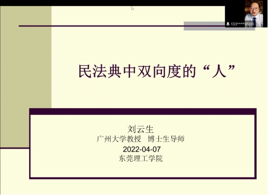 法律系于腾讯会议举办线上“法路历程”系列讲座第十七期。本期讲座邀请了广东省法学会民商法研究会副会长、广州大学不动产研究院院长、二级教授、博士生导师、广州市人民政府法律顾问、中央电视台法律讲堂主讲人刘云生教授为我们讲授民法典中双向度的“人”。肉漫画