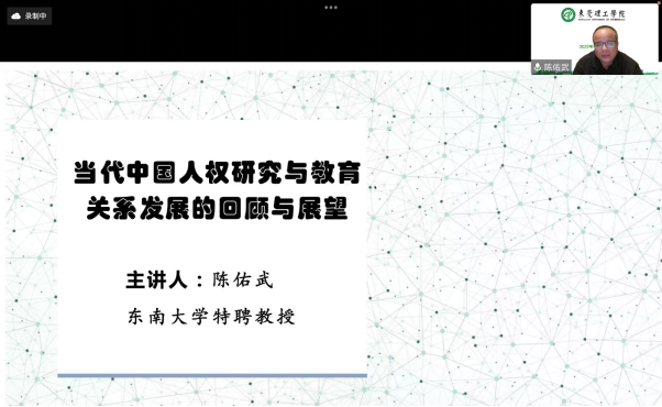 法律系于腾讯会议举办线上“法路历程”系列讲座第十八期。本期讲座邀请了东南大学特聘教授、法学院博士生导师、广州大学人权研究院(国家基地)执行院长、中国政法大学兼职教授陈佑武教授为我们讲授“当代中国人权研究与教育关系发展的回顾与展望”。肉漫画